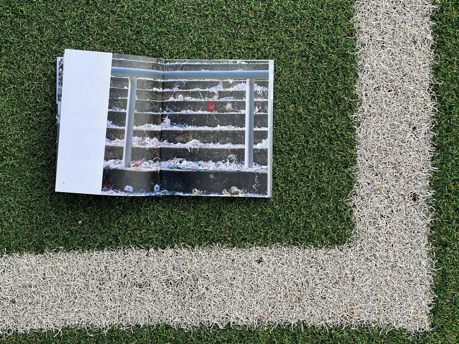 Christoph Buckstegen begleitete diesen Samstag, den 22.05.2004, mit seiner Kamera. Er zeigt das gesamte Spektrum an Fotografien rund um dieses besondere Spiel. So findet man Bilder vom Spiel selber: zum Beispiel auf der letzten Doppelseite den Moment, in dem das allerletzte Tor auf dem Bökelberg fällt, just der Moment, in dem der Ball das Tornetz maximal ausbuchtet und der Torwart, zu Boden sinkt.  Aber, und das steht deutlich im Vordergrund von Buckstegens Fotografie, vorallem widmet sich der Fotograf den Fans, die zu diesem, für sie wichtigen Ereignis gekommen sind. Er zeigt die Menschenmengen auf den steilen Stehplatztribünen des Gladbacher Stadions, er zeigt die Menschen vor dem Stadion und auf dem Weg dorthin und er findet die kleinen Momente, die den Betrachter zum Schmunzeln bringen, wenn zum Beispiel gestandene Herren sich Cola-Kisten teilen, um einen Blick auf das Geschehen auf dem Rasen zu werfen. Andere Motive zeigen, warum der Bökelberg vermutlich keine Zukunft im modernen Fussball gehabt hätte. Sie zeigen die Enge durch die umgebenen Wohngebiete, die einen auf die Zukunft ausgerichteten Anbau / Neubau verhinderten, und welche Spuren die Scharen von Fussballfans in der Nachbarschaft hinterliessen, und die zurückgelassenen Bierdosen sind da nur das kleinste Übel.
