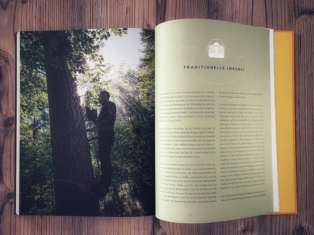Der Naturfotograf Ingo Arndt und der Bienen-Experte Jürgen Tautz haben sich zusammengetan und ein fast 200 Seiten umfassendes Buch über wildlebende Bienenvölker veröffentlicht. Erschienen ist der Bildband im Knesebeck-Verlag. Die beiden versuchen in dem Buch das Leben der kleinen Insekten von allen Seiten – im wahrsten Sinne- zu beleuchten. Sie gliedern das Buch in 7 Kapitel, die das Zusammenleben eines Volkes, die Mitbewohner aber auch Feinde darstellen. Der Leser erfährt etwas über die spannende Orientierung der Tiere und in einem letzten Kapitel lernt man etwas über den Beruf des Zeidlers, eine Form der traditionellen Imkerei.